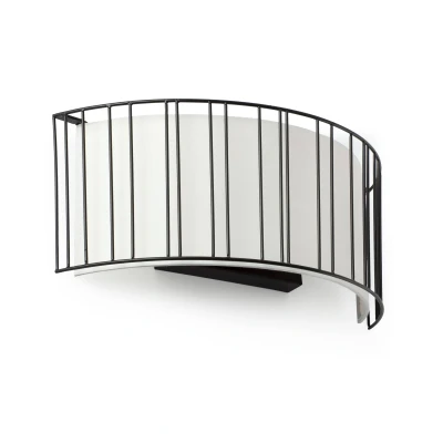 This wall lamp has a cage design which creates a positive addition to the decor of the room. The fabric shade adds a further dimension to the fitting, giving the lamp a softer tone. offers a variety of matching products, including table lamps, floor lamps, ceiling lights and wall lights. The fittings are also available in both black and white finishes. Class one. Separately switched.