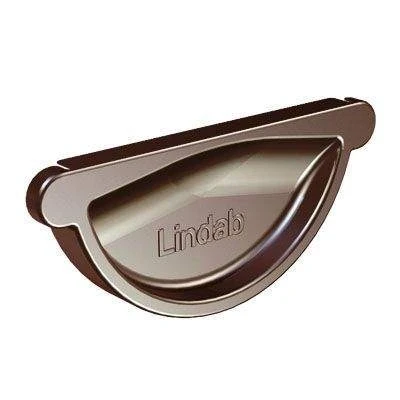 Lindab Half Round Stop End Outlet 100mm Polyester Painted Brown Self sealing stop end due to smart construction and EPDM rubber. Dimensions Diameter: 100mm. Description When it comes to creating beautiful, environmentally friendly and maintenance free buildings, using the right materials is everything. The Lindab Rainline„ Steel Rainwater system uses the very best in lightweight galvanised steel to create a contemporary, cost effective and eco-friendly guttering system that wont shrink, split or leak “ and looks great too. Each piece of core steel is coated with 275g zinc per square metre, a naturally self-healing coating that wont discolour or rust. The coating on both our High Build Polyester and Aluzinc guttering systems, are guaranteed for 15 years with a life expectancy in excess of 70 years. Rainline is ideal for modern and traditional buildings for both refurbishments and new build projects. Gutters and downpipes simply push together without the need for any special tools or sealants. Properties Steel is the ultimate material for roof-drainage systems. It is much lighter than cast iron, is easier to handle than aluminium and offers minimal thermal movement compared to plastic (which can move and crack causing leaks). Lindabs steel also has the lowest CO2 impact of any competitor. Low maintenance The only maintenance required is an occasional wipe or wash down. Easy assembly and installation guarantee a long service life. Vandal resistant Highly resistant to attack from vandals “ can be fixed flush to a wall to prevent anyone climbing up the downpipe Minimum environmental impact Tests have proven that Rainline steel systems reflect the lowest cradle-to-grave impact by minimizing the use of raw materials, components, energy, packaging and transport. Cost-effective solution Competitively priced against leading plastic systems and inexpensive compared with aluminium and cast iron.. Lindab 100mm Half Round Steel Self Sealing Stop End - Brown Galvanised Steel