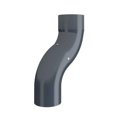 Lindab Round One Piece Bend 100mm Painted Dark Grey One piece bend used when there are 100mm or less facade shifts laterally. 100mm set projection. Dimensions Diameter: 100mm. Description When it comes to creating beautiful, environmentally friendly and maintenance free buildings, using the right materials is everything. The Lindab Rainline„ Steel Rainwater system uses the very best in lightweight galvanised steel to create a contemporary, cost effective and eco-friendly guttering system that wont shrink, split or leak “ and looks great too. Each piece of core steel is coated with 275g zinc per square metre, a naturally self-healing coating that wont discolour or rust. The coating on both our High Build Polyester and Aluzinc guttering systems, are guaranteed for 15 years with a life expectancy in excess of 70 years. Rainline is ideal for modern and traditional buildings for both refurbishments and new build projects. Gutters and downpipes simply push together without the need for any special tools or sealants. Properties Steel is the ultimate material for roof-drainage systems. It is much lighter than cast iron, is easier to handle than aluminium and offers minimal thermal movement compared to plastic (which can move and crack causing leaks). Lindabs steel also has the lowest CO2 impact of any competitor. Low maintenance The only maintenance required is an occasional wipe or wash down. Easy assembly and installation guarantee a long service life. Vandal resistant Highly resistant to attack from vandals “ can be fixed flush to a wall to prevent anyone climbing up the downpipe Minimum environmental impact Tests have proven that Rainline steel systems reflect the lowest cradle-to-grave impact by minimizing the use of raw materials, components, energy, packaging and transport. Cost-effective solution Competitively priced against leading plastic systems and inexpensive compared with aluminium and cast iron.. Lindab 100mm Round One Piece Bend - Dark Grey Galvanised Steel