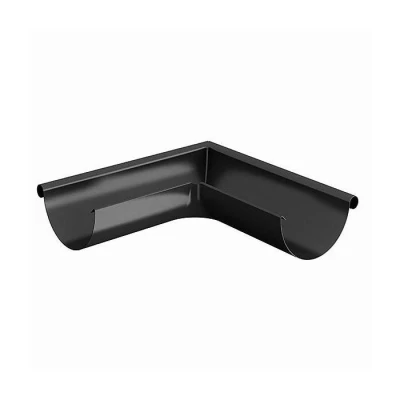 Drainage SuperstoreSecure this 90 external gutter angle to an RSK gutter joint. Two joints are needed per angle. Lindab HB polyester painted steel guttering Lindab Anthracite Grey steel guttering can be fitted to new builds and refurbishments to offer a subtle and light-coloured guttering system that isnt obtrusive or distracting from the overall aesthetic of the property. With a 70-year life expectancy, HB polyester painted guttering wont split, leak, shrink or fade and the 275g layer of zinc that this steel guttering is coated in wont discolour or rust. Extremely low maintenance, Lindab HB polyester painted steel guttering is modern and inexpensive, perfect for homeowners who need longevity and durability from their guttering system without the hassle of constant maintenance. This system only needs the occasional wipe down. The steel guttering itself is made from galvanized steel guttering, coated in zinc for extra durability, and the HB polyester paint is warrantied for 15 years. To ensure safety and security this HB polyester painted steel guttering can be fit flush to walls so people cant use it to scale up buildings.. Lindab 125mm Half Round 90dg External Gutter Corner - Anthracite Grey Galvanised Steel