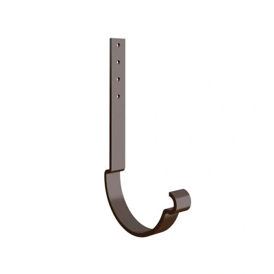 Quickest to assemble, does require fairly straight boards or roofs edges. Spacings recommended at 800mm intervals. Dimensions Diameter: 125mm. Length: 196mm. Description When it comes to creating beautiful, environmentally friendly and maintenance free buildings, using the right materials is everything. The Lindab Rainline„ Steel Rainwater system uses the very best in lightweight galvanised steel to create a contemporary, cost effective and eco-friendly guttering system that wont shrink, split or leak “ and looks great too. Each piece of core steel is coated with 275g zinc per square metre, a naturally self-healing coating that wont discolour or rust. The coating on both our High Build Polyester and Aluzinc guttering systems, are guaranteed for 15 years with a life expectancy in excess of 70 years. Rainline is ideal for modern and traditional buildings for both refurbishments and new build projects. Gutters and downpipes simply push together without the need for any special tools or sealants. Properties Steel is the ultimate material for roof-drainage systems. It is much lighter than cast iron, is easier to handle than aluminium and offers minimal thermal movement compared to plastic (which can move and crack causing leaks). Lindabs steel also has the lowest CO2 impact of any competitor. Low maintenance The only maintenance required is an occasional wipe or wash down. Easy assembly and installation guarantee a long service life. Vandal resistant Highly resistant to attack from vandals “ can be fixed flush to a wall to prevent anyone climbing up the downpipe Minimum environmental impact Tests have proven that Rainline steel systems reflect the lowest cradle-to-grave impact by minimizing the use of raw materials, components, energy, packaging and transport. Cost-effective solution Competitively priced against leading plastic systems and inexpensive compared with aluminium and cast iron.. Lindab 125mm Half Round Steel Rafter Bracket - Brown Galvanised Steel
