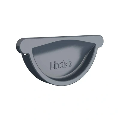 Lindab Half Round Stop End Outlet 125mm Polyester Painted Dark Grey Self sealing stop end due to smart construction and EPDM rubber. Dimensions Diameter: 125mm. Description When it comes to creating beautiful, environmentally friendly and maintenance free buildings, using the right materials is everything. The Lindab Rainline„ Steel Rainwater system uses the very best in lightweight galvanised steel to create a contemporary, cost effective and eco-friendly guttering system that wont shrink, split or leak “ and looks great too. Each piece of core steel is coated with 275g zinc per square metre, a naturally self-healing coating that wont discolour or rust. The coating on both our High Build Polyester and Aluzinc guttering systems, are guaranteed for 15 years with a life expectancy in excess of 70 years. Rainline is ideal for modern and traditional buildings for both refurbishments and new build projects. Gutters and downpipes simply push together without the need for any special tools or sealants. Properties Steel is the ultimate material for roof-drainage systems. It is much lighter than cast iron, is easier to handle than aluminium and offers minimal thermal movement compared to plastic (which can move and crack causing leaks). Lindabs steel also has the lowest CO2 impact of any competitor. Low maintenance The only maintenance required is an occasional wipe or wash down. Easy assembly and installation guarantee a long service life. Vandal resistant Highly resistant to attack from vandals “ can be fixed flush to a wall to prevent anyone climbing up the downpipe Minimum environmental impact Tests have proven that Rainline steel systems reflect the lowest cradle-to-grave impact by minimizing the use of raw materials, components, energy, packaging and transport. Cost-effective solution Competitively priced against leading plastic systems and inexpensive compared with aluminium and cast iron.. Lindab 125mm Half Round Steel Self Sealing Stop End - Dark Grey Galvanised Steel