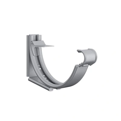Lindab Round Adjustable Snap-On Bracket 150mm Polyester Painted Silver Metallic A versatile gutter bracket that easily can be adjusted for different roof pitches. Spacings recommended at 800mm intervals. Dimensions Diameter: 150mm. Description When it comes to creating beautiful, environmentally friendly and maintenance free buildings, using the right materials is everything. The Lindab Rainline„ Steel Rainwater system uses the very best in lightweight galvanised steel to create a contemporary, cost effective and eco-friendly guttering system that wont shrink, split or leak “ and looks great too. Each piece of core steel is coated with 275g zinc per square metre, a naturally self-healing coating that wont discolour or rust. The coating on both our High Build Polyester and Aluzinc guttering systems, are guaranteed for 15 years with a life expectancy in excess of 70 years. Rainline is ideal for modern and traditional buildings for both refurbishments and new build projects. Gutters and downpipes simply push together without the need for any special tools or sealants. Properties Steel is the ultimate material for roof-drainage systems. It is much lighter than cast iron, is easier to handle than aluminium and offers minimal thermal movement compared to plastic (which can move and crack causing leaks). Lindabs steel also has the lowest CO2 impact of any competitor. Low maintenance The only maintenance required is an occasional wipe or wash down. Easy assembly and installation guarantee a long service life. Vandal resistant Highly resistant to attack from vandals “ can be fixed flush to a wall to prevent anyone climbing up the downpipe Minimum environmental impact Tests have proven that Rainline steel systems reflect the lowest cradle-to-grave impact by minimizing the use of raw materials, components, energy, packaging and transport. Cost-effective solution Competitively priced against leading plastic systems and inexpensive compared with aluminium and cast iron.. Lindab 150mm Round Steel Adjustable Snap-On Bracket - Silver Silver Metallic Galvanised Steel