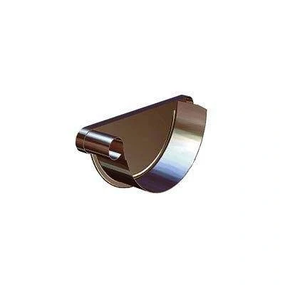 Lindab 190mm Half Round Steel Left Handed Stop End Brown Galvanised