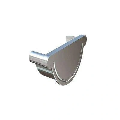 Lindab 190mm Half Round Steel Left Handed Stop End Silver Metallic Galvanised