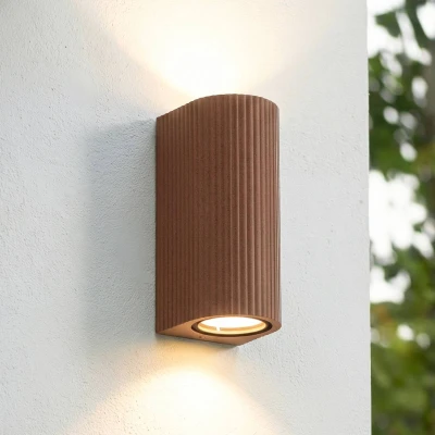 Lindby Aluvo outdoor wall light, rust, 16 cm, IP65, ribbed