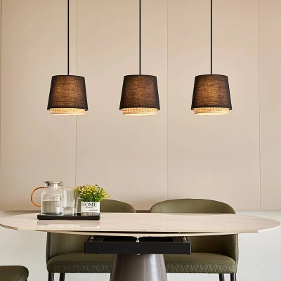 Rustic Ananya pendant light with wooden elements Ananya brings a rustic country house flair to interior design. The hanging light is made of black iron and has striking wooden elements on both its ceiling canopy and its lampshades, which give it that certain something. The light can be fitted with E27 bulbs and the light generated is dimmed towards the underside of the lampshades. Ananya is therefore perfect for installation above a dining table and provides the necessary lighting for dinner.