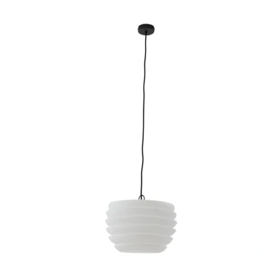 Lights.coWhite outdoor hanging light Arona, IP65 The Arona outdoor hanging light impresses at first glance with its decorative appearance. The white plastic shade is made up of several slats that are semi-circular in shape and merge into one another. This creates an appealing lighting effect that emits a very uniform light pattern thanks to its regular shape. The pendant light is dustproof and protected against water jets, meaning it can be installed anywhere outdoors without hesitation.