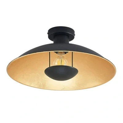 Lights.coNarisara round ceiling light with a black and gold finish Narisara is a beautiful source of light for the entire living area, impressing with its cosy radiance and equally pleasant lighting effect. The lampshade is dome-shaped and black on the outside, while a shimmering gold foil has been applied to the inside, which contrasts beautifully with the black and also reflects the light cosily, making a living space particularly cosy. There is a black cover underneath the bulb, which creates a predominantly indirect light, so that the light is soft and diffuse and is perfect for pleasant room lighting.