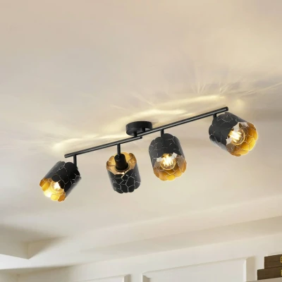 General description The Aralena ceiling light features a stylish industrial design, perfect for enhancing the modern vibe of your living room, dining room, or office. With its elegant black and gold finish, this 4-bulb lighting solution creates a cozy and warm atmosphere, making it an ideal addition to any contemporary space. Technical specifications Dimensions: Length 97 cm Number of bulbs: 4 Installation Requires an external dimmer switch for brightness adjustment (not included). Usage Perfect for illuminating living rooms, dining rooms, and hallways. Adjust the light intensity to create the desired ambiance. Other information