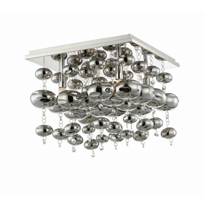 Lamp MastersEsfera Ceiling Lamp Chrome/Smoke hangs from the ceiling like a magical ocean of glass crystals in which the light is reflected to illuminate the room. The constant reflection between the glossy surfaces amplifies the lamp’s captivating and dynamic expression. The overall expression is one of luxurious stylishness, and the lamp has an unmistakeable glamorous touch. Particularly in modern homes, Esfera can be the finishing touch in ambitious décor that seeks to catch and seduce the eye with fascinating shapes and playful light. Whether it hangs in the living room, kitchen, or entrance hall, Esfera makes its presence known, even when the light itself is off.