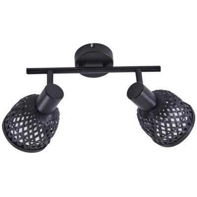 ManoManoGeneral description The Eskil ceiling light features a modern industrial design that combines elegance with rustic charm. This 2-bulb ceiling light, made of black bamboo, is perfect for enhancing the atmosphere in your living room, dining room, or hallway. It provides pleasant lighting while adding stylish accents to any space. Technical specifications Type: Ceiling light Number of bulbs: 2 Material: Black bamboo Dimensions of bulbs: Ø 10 cm Rotation: 350° Swivel: 90° Installation Requires an external dimmer switch (not included) for adjustable light intensity. Usage Ideal for living rooms, dining rooms, and hallways. Creates a cozy and warm atmosphere in your home. Other information