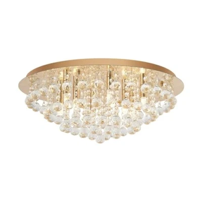 Lamp MastersThe Gillion Gold Ceiling Lamp makes a distinguished impression with its shiny golden fitting and splendid composition of glittering crystals that give the lamp a glamorous touch. If you want to enrich your foyer, reception or even your private living room with a sumptuous touch, Gillion is the lamp for you. The lamp has 8 light sources that fit G9 LED light bulbs. These are surrounded by a sparkling sea of finely cut glass crystals. When the lamp is switched on, the light is reflected again and again in the surfaces of the crystals so that the whole structure lights up and casts a luminous pattern on the ceiling around the lamp. As the crystals are also arranged so that they point down into a point, the ceiling lamp can advantageously be mounted in the centre of the room, where the beautiful effect can be fully expressed.