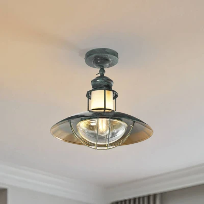 Lights.coIndustrial-looking Louisanne ceiling lamp made of concrete grey metal Louisanne does indeed look like a ceiling lamp with an antique character because familiar shapes from a bygone era have been used. In addition, the surface of the metal shade has been given a concrete grey finish, which has an industrial character. Louisanne is therefore a ceiling lamp that can be combined with both industrial styles and interiors that integrate antique elements. Depending on the incidence of light, the grey colour of the light can range from green to bluish.