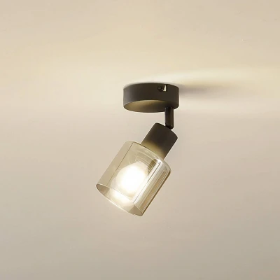 Lights.coNetty 1-bulb ceiling light with a lampshade made of smoky grey glass The Netty ceiling light made of smoky grey glass is a stylish lighting solution that seamlessly blends into modern interiors. Its appealing design and soft light distribution create an atmosphere in every room, be it the dining room, living room or hallway, that both calms and inspires. The lamp is suitable for use with an external dimmer so that the light intensity can be adjusted according to individual needs to create the desired mood. (Please note that a suitable dimmer must be purchased separately) With its 1-bulb design, this ceiling light provides targeted lighting that bathes the room in a fascinating light and supports daily activities. - the spotlight can be rotated 350° and tilted 90°