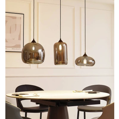 ManoManoGeneral description This Lindby Arloris hanging light features three uniquely shaped smoked glass shades, making it an elegant addition to your living room or dining room. The design includes a cylindrical, a nearly spherical, and a flatter round shade, all crafted from glass with a smoky grey finish that creates a warm and inviting atmosphere. Technical specifications Type: Hanging light Number of bulbs: 3 Material: Glass Shade color: Smoky grey Installation Requires installation of a dimmer switch (not included) for adjustable light intensity. Usage Ideal for use over dining tables or counters, enhancing the ambiance of the room. Creates a cozy atmosphere, suitable for both casual and formal settings. Other information
