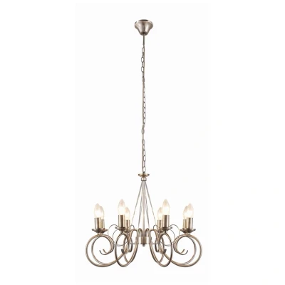 Lights.coElegant Marnia chandelier with stylish antique brass finish As a chandelier, Marnia combines unmistakably nostalgic and romantic elements, giving it a very stylish expression. The frame of the chandelier is made exclusively of metal, with no other materials used, resulting in a very pure aesthetic. The antique brass finish gives Marnia a particularly antique character and the curved tendrils that form the arms and lead from the centre of the lamp to the lamp plates are simply enchanting. Thanks to its eight light sockets, the chandelier is ideal for larger dining and living areas, as the multi-bulb design means that Marnia can be used to create an appropriate level of brightness.