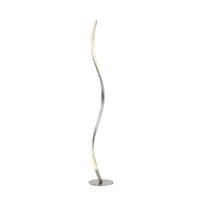 Lamp MastersThe Criostal Floor Lamp Alu quickly becomes a gem in any modern apartment with its dynamic design and extravagant details that give the lamp a glamorous look. From a circular base, the lamp winds up in waves, covered on one side with brushed aluminium and on the other with plastic crystals. The light from the built-in LED shines through the crystals, creating a glittering effect that makes the Criostal Floor Lamp perfect as accent lighting in the living room or bedroom. The included remote control allows you to adjust the brightness and colour. The brightness can be dimmed steplessly, while the RGB colours light up in a striking pang-like glow that makes the lighting experience a little party in itself. The many adjustment options make the Criostal Floor Lamp the perfect addition to the modern home.