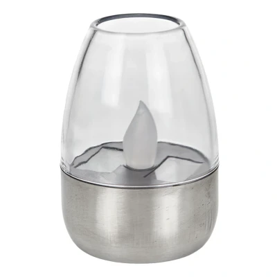Lamp MastersPedas Solar Cell Lamp Steel is a cosy and decorative addition to the lighting in the garden, on the terrace or balcony. The lamp is designed as a candle in a glass, where the bottom is made of stainless steel, while the upper part is dominated by a clear plastic cover. As the lamp has an IP44 protection class, it can safely be left outside at any time of the year and enrich the surroundings with its atmospheric lighting. This model has a built-in solar panel As the day draws to a close, the lamp utilises the sun's rays to shine in the darkness. The lamp's light has an amber colour and flickers like candlelight. The flame-shaped cover is reflected in the clear plastic element, magnifying the flame effect. The lamp comes in a smart set of 10, so you can easily create beautiful lighting effects in the dark of night.