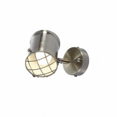 Lights.coAntique looking wall spot Ebbi with toggle switchThis LED wall spot has an antique brass finish that gives it an antique effect. Above the shade sits a lattice-shaped cover and behind it hides an E14 socket. On its wall mount is a toggle switch, which makes it particularly easy to turn on and off.
