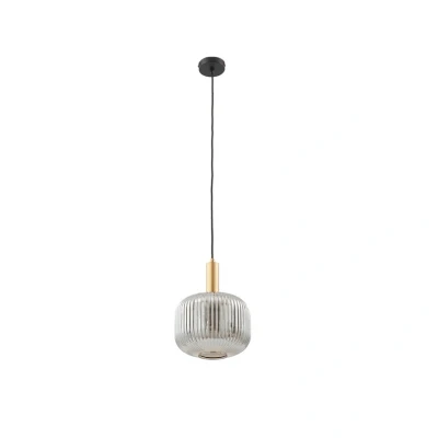 The Doroteo pendant light combines stylish vintage aesthetics with modern functionality. Made from high-quality glass and sturdy iron, the light comes in an elegant smoky grey colour, enhanced by golden accents. This combination of materials and colours lends every room, be it a dining room or living room, a special atmosphere.