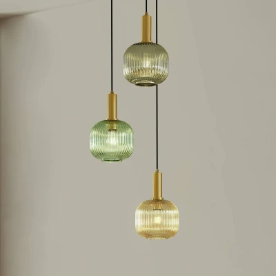 Lindby Doroteo pendant light, 3 bulb, green/amber/grey, glass