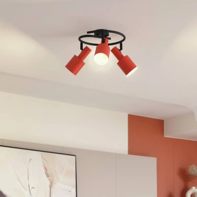 Lights.co3-bulb Ovelia downlight in a round shape The Ovelia downlight is ideal for illuminating your own home. It is versatile and can be used in the hallway, bedroom, living room or study, for example. The ceiling light consists of a round, black frame to which three lampshades are attached. These can be variably aligned so that the light is directed to where it is needed. Ovelia impresses with its special design and striking colour scheme, which makes it an eye-catcher in the living area even when switched off.