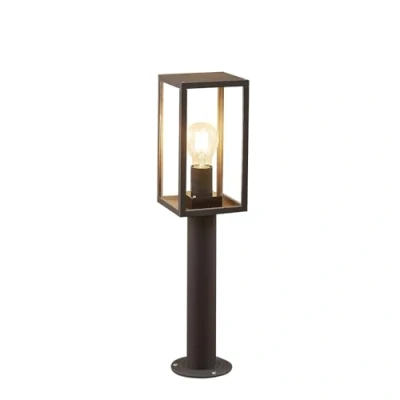 Lights.coLantern-like pillar light Filimon with angular lampshade in dark grey and clear glass inserts The Filimon pillar lamp impresses at first glance with its straightforward, modern design. The lampshade is square with a completely angular housing. In an abstract form, it is reminiscent of a classic lantern or, more specifically, a box. The base of the lamp, like the rest, is made of dark grey tinted aluminium and the look is beautifully complemented by clear glass inserts. On the one hand, this serves to seal the lamp well for outdoor use and, on the other hand, it also ensures that the E27 bulb becomes a clearly visible part of the overall look. Therefore, you should ideally use filament or rustic bulbs that look authentic in style.