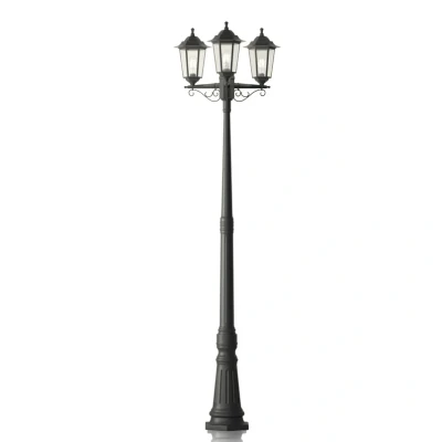 The Nane Outdoor Garden Lamp stands as a striking feature in any garden or park setting. Its classic lamppost shape is complemented by three elegantly crafted lampshades, adorned with romantic scrolls and filigree details. Made from seawater-resistant plastic, the lamp's black finish allows it to seamlessly blend with various outdoor styles. The transparent glass inserts in the lampshades offer a clear view of the light source, inviting users to choose decorative bulbs that accentuate the lamp's nostalgia. Energy-saving LED bulbs or rustic filament options are highly recommended to enhance its charm.