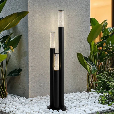 Lights.coGavros path light: Stylish lighting made of die-cast aluminium for outdoor use The Gavros path light combines modern design with functional elegance. Made of robust die-cast aluminium and glass, it blends seamlessly into any modern environment. The 3-bulb design ensures even illumination of terraces and other outdoor areas. The IP code IP44 ensures that the light performs reliably even in adverse weather conditions. The combination of a black finish and transparent glass shade gives the light a timeless aesthetic that impresses both during the day and at night. This path light is not only a functional element, but also a stylish accessory for outdoor areas.