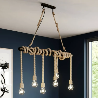 Lindby hanging light Hajo, 100 cm, 6 bulb, rope