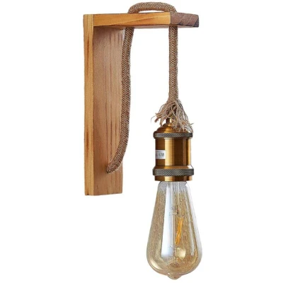 Lights.coHelou wall light with a wooden frame With this wall light, the focus is undoubtedly on the light bulb as it occupies a central position and the rest of the light has a comparatively discreet appearance. However, the wooden frame of the Helou wall lamp is very attractive. It is made of pine wood and has a natural-looking finish with dark and light areas. The grain of the wood comes out very well, emphasising the natural flair. The cable, which is packaged in a rope, and the brass-coloured socket ensure that the appearance of the light embodies the popular vintage look and brings an antique touch to the room. Bulbs that look right include filament bulbs or rustic bulbs that spread a particularly nostalgic flair.