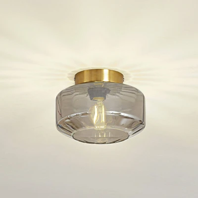 Hildur 1-bulb ceiling light with striking smoked grey glass shade The Hildur ceiling light combines modern design with a touch of vintage to give any room a special touch. With an attractive combination of smoked glass and a brass-look canopy, this light provides an elegant light source for the dining room, living room or hallway. The ceiling light is not only a visual highlight, but also impresses with its functionality. Although a dimmer is not included in the scope of delivery, the brightness can be adjusted to suit individual preferences by connecting to an external dimmer to create the desired atmosphere (please note that the external dimmer must be purchased separately).