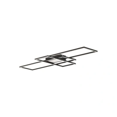 Lights.coBlack Ismera LED ceiling light with remote control, CCT, dimmable An angular design consisting of many rectangles characterises the look of the Ismera ceiling light. The light with a rectangular canopy and three aluminium profile frames of different sizes has a matt black finish, which enhances the modern look. Behind satinised plastic covers, LEDs have been installed in both the canopy and the frames, which can be variably adjusted in terms of their light distribution. The light colour can be selected from 3,000 K to 6,500 K using the remote control supplied and the brightness is infinitely dimmable. This flexibility makes the Ismera ceiling light an all-round talent. Thanks to its size and high light output, it also illuminates large rooms to perfection.
