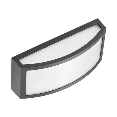 Lights.coJakari LED outdoor wall light made of dark grey aluminium with plastic diffuser If you are looking for stylish outdoor lighting, Jakari will not disappoint. It is made of aluminium and has a plastic diffuser that pleasantly dims the generated light. The permanently installed LEDs generate a warm white light that is perfect for outdoor areas. The rather simple design of the LED outdoor wall lamp integrates well into the architectural style of a house without blending in. The IP code IP54 protects Jakari against dust and splash water, making it perfect for a covered driveway or terrace.