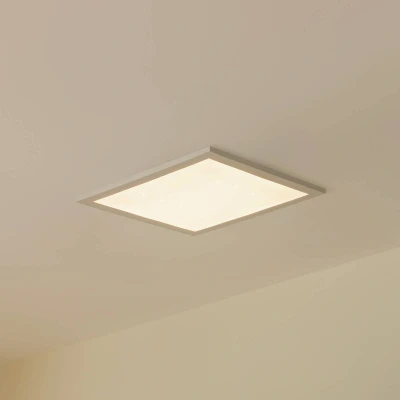 ManoManoGeneral description This stylish Kenma LED panel light features a modern industrial design, making it a perfect addition to your living room, dining room, office, or any other space in your home. It not only enhances the aesthetic appeal of your environment but also provides energy-efficient lighting. The lamp is designed to create a cozy atmosphere with warm LED bulbs, adding charm to your loft, apartment, or house. Technical specifications Dimensions: 29.6 cm x 29.6 cm Light color adjustable in three stages: 2,700 K / 4,000 K / 6,500 K Continuously dimmable: 10% - 100% Memory function retains last selected value Night light mode available Diffuser with star effect for special lighting accents Compatibility and accessories Remote control included for convenient lighting adjustments Lightbulb included for immediate use Installation Ready to use upon delivery; simply assemble the lamp with the included lightbulb Usage Ideal for creating a cozy and relaxing atmosphere Perfect for