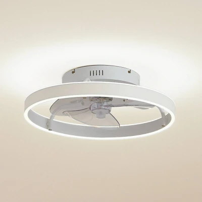 Lindby LED ceiling fan Momitu, white, aluminium, Ø 14 cm