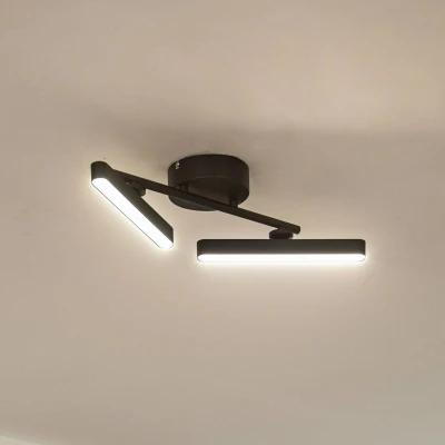 ManoManoGeneral description This stylish Eldrin LED ceiling light features a modern industrial design, perfect for enhancing the ambiance of your living room, dining room, or office. With its elegant black finish, it seamlessly integrates into contemporary interiors, creating an inviting and energizing atmosphere. The light is designed to accommodate warm LED bulbs, providing a cozy and homely feel. Enjoy the charm and efficiency this lamp brings to your space. Technical specifications Type: LED ceiling light Number of bulbs: 2 Color: Black Rotatable head: 350° Swiveling head: 90° Installation Ready to use - Lightbulb included for easy assembly. Usage Easily dimmable by connecting to an external dimmer switch (not included) to adjust light intensity according to your preference. Ideal for living rooms, dining areas, bedrooms, kitchens, and hallways. Other information