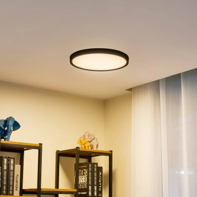 Lights.coSimple LED ceiling light Pravin in a matt black colour scheme This beautifully shaped ceiling light combines functional lighting with an attractive design. The warm white light creates a cosy atmosphere in your living area. The light stylishly complements the lighting concept of any room with its great look. It is the perfect item for creating a cosy atmosphere in any home. With this ceiling lamp, you can rely on the high brand quality of Lindby. The ceiling light is matt black. It fits easily into any living style and can not only provide lighting, but also be a great decoration. Give your home an even cosier feel-good ambience with this ceiling lamp.