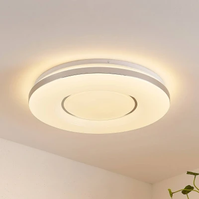 Robini functional LED ceiling light with remote control The Robini LED ceiling light not only impresses with its classic round shape and flat design, which blends perfectly into different environments, but also with its numerous technical features. Robini has an integrated timer and night light function, where it lights at a maximum of 10% of its brightness. The dimming function is particularly practical, as it can be dimmed continuously or in several fixed levels: 100%, 50% and 20%. The colour temperature can also be individually adjusted using the remote control included in the scope of delivery, meaning that this light leaves nothing to be desired.