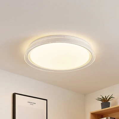 Lights.coSleya dimmable LED ceiling light with numerous practical functions This light source impresses with its advanced technology, which proves to be extremely practical in everyday life. The colour temperature (3 levels) and brightness can be individually adjusted using the remote control supplied. The brightness can be dimmed both continuously and in several stages: 100%, 50% and 20%. The Sleya LED ceiling light also has an integrated timer that can be set to a maximum of 30 minutes and a night light function that shines at approx. 10% of the brightness. The LEDs are permanently installed and offer good illumination, providing sufficient light even in larger rooms.