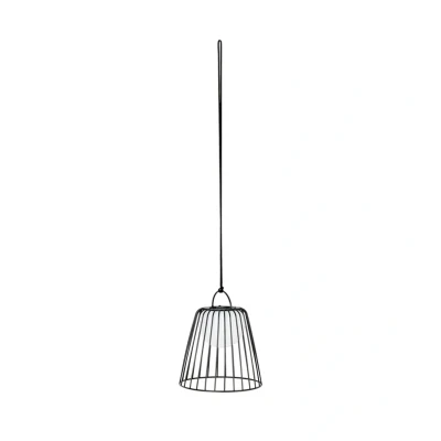 Lights.coBattery-operated Levino LED pendant light for outdoor use The Levino pendant light for outdoor use is fitted with warm white LEDs and can be dimmed in three stages. Its modern design immediately catches the eye. A metal shade, shaped like a cage, surrounds the spherical, white light source and creates an appealing light pattern thanks to the struts. The plastic diffuser emits a uniform, glare-free light. Another advantage is the hanging light's battery operation. Thanks to the rechargeable battery, it can be positioned anywhere using the black cord and only requires a power connection for charging with the enclosed USB cable - 3-step dimmable - Battery life 4 hours - Charging time 3.5 hours