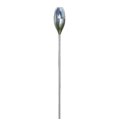 Lamp MastersJari Solar Cell Lamp Steel is a beautiful addition to the garden that not only pleases with its soft glow but also benefits with its good lighting functions. The lamp has a strikingly slender, long frame that ends in a lamp head in a characteristic glass shape. Inside the "glass" is a flame-shaped cover through which the light from the built-in LEDs emerges. When lit, the light has a deep amber-golden colour and flickers like a real candle in a very cosy and decorative effect. This model has a built-in solar panel. The lamp therefore does not need to be connected to the electricity grid but works via pure solar energy. The lamp has a twilight sensor that detects when darkness falls and it is time to light up. The solar-powered LEDs can light up for up to 8 hours. Rechargeable batteries are included (Ni-MH 1.2V 600mAh).