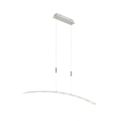 Lights.coWarm white LED hanging light Manon – ideal for the dining room With its warm white light colour, the light from this height-adjustable LED hanging light is very cosy. A total of eight LEDs are evenly distributed along the curved metal rod, where they are covered by a frosted glass cover. The light output is exceptionally good, but thanks to LED technology, this does not mean high power consumption. On the contrary, it remains at a low level. If you want to adjust the height of the suspension system, you can do so in a few simple steps, as the rise and fall mechanism makes this easy from 110 cm to 210 cm. The Manon LED hanging light is highly recommended for use in the dining area, as both its elongated shape and height adjustability ensure perfect illumination of the dining table.