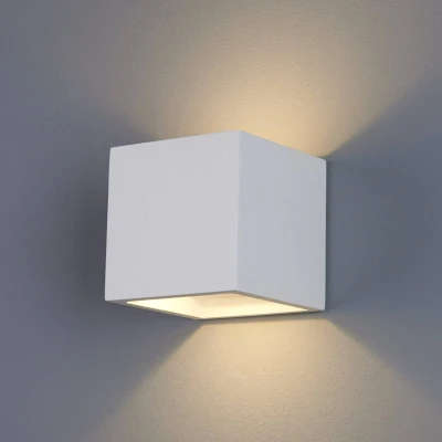 LED wall lamp Marita in a beautiful plaster design The cube shape suits the LED wall light Marita very well and makes it an attractive and universal light source for modern living spaces. But Marita also comes into its own in commercial spaces, especially in restaurants, providing upward and downward light that is warm and inviting. White is a discreet colour that opens up a wide range of installation options, but perhaps someone would like to use this wall light to express something special rather than the ordinary. In this case, it can be painted in the desired colour or painted with a personal and distinctive motif. Gloves and sandpaper are included in the scope of delivery for this and for prior surface treatment. In no time at all, a light for individualists is created that can be perfectly matched to the existing ambience or act as an effective contrast to it.