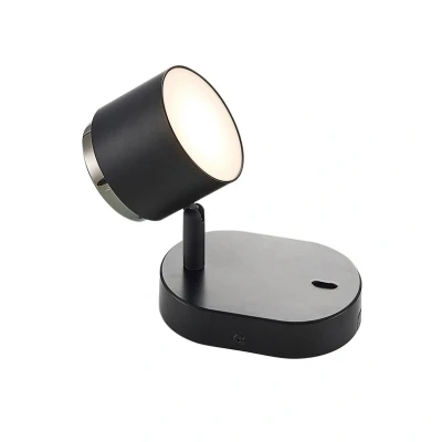 Lights.coBlack Marrie LED wall spotlight with adjustable lampshade and switch Marrie impresses with a pleasantly modern design and a cool, elegant look, since the wall light has a black surface finish. The cylindrical head is connected to the oval-shaped frame by a joint, which means it can be rotated and pivoted as desired. The switch is located directly on the frame so that the wall spotlight can be easily and directly controlled, making it ideal for use next to the bed or the couch. The integrated LEDs are highly efficient and have a suitable light output.
