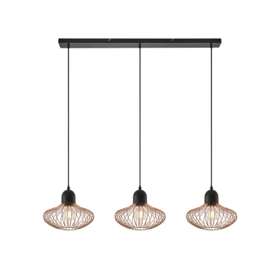 Justinos 3 Pendant Black/Copper is a stylish addition to the dining table, kitchen counter or other areas in need of practical, wide perimeter lighting. The lamp's three lampshades are crafted in a trendy cage design consisting of bent metal rods arranged around the light source to form an attractive figure.