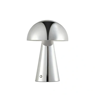Lindby Nevijo LED rechargeable table lamp, chrome, Ø20cm, USB, dimmer