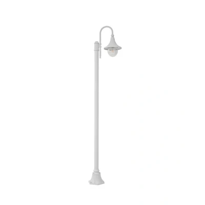 White Daphne post light with a nostalgic design The Daphne post light combines stylish design with functionality and manages to bathe outdoor areas in a new light. Made from aluminium and robust polycarbonate, this 1-bulb light promises durability and resistance. With an IP code of IP44, it is optimally protected against splashing water, making it ideal for illuminating your patio. The simple elegance of the white colour scheme blends seamlessly into different outdoor areas and underlines the stylish atmosphere of your outdoor space. This lamp post is also designed so that its brightness can be adjusted via an external dimmer, allowing you to regulate the lighting to suit your individual needs. Please note that a suitable dimmer is not included in the scope of delivery and must be purchased separately.