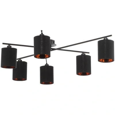 Lights.coCeiling lamp Pellinora with black-gold lampshades The ceiling lamp Pellinora comes in its dark design very elegant and stands out on the ceiling even when it is not in use. It has a total of six cylindrical lampshades made of black textile, which inside surprise with a warm gold tone and in this way provide particularly warm light accents. This modern ceiling lamp can excellently illuminate even larger rooms and can be combined with different color concepts.